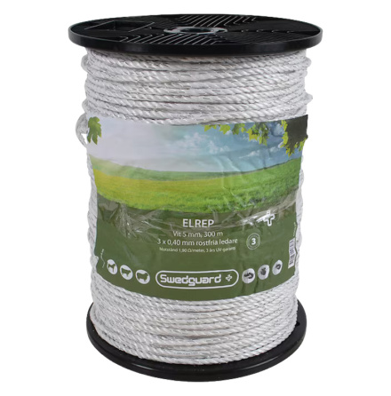 Varumärke: SwedguardElrep Tross Swedguard + 5 mm Vit 300 m. 1,9 Ohm/mElrepen som är markerade med...I Lager Eget Lager