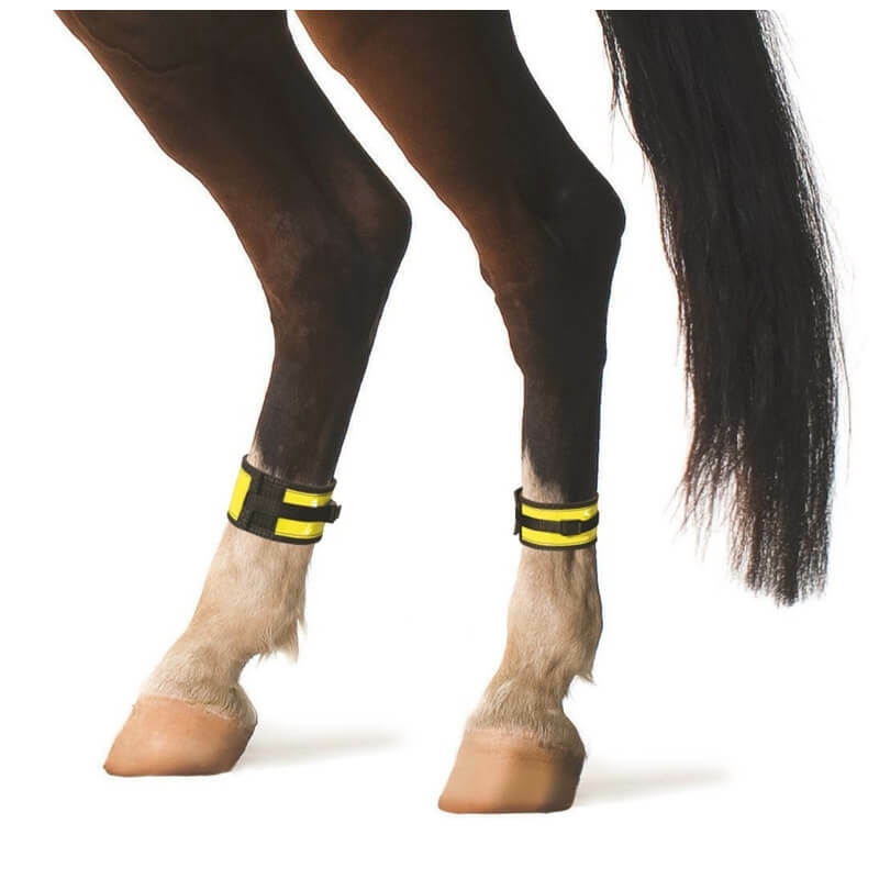 Neongula, högsynliga benskydd för häst som ger extra trygghet vid ridning i skymning, dimma eller andra förhållanden med låg sikt. Det starkt reflekterande materialet gör att du och din häst syns tydligare i trafiken och i mörkare miljöer.