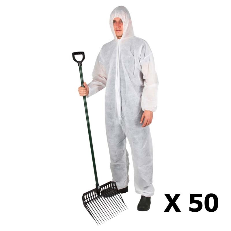 Den anpassningsbara designen med elastiska muddar vid armar, ben och midja säkerställer att overallen är bekväm att bära och ger god rörlighet, vilket är kritiskt vid arbete på gården. Utrustad med en huva och en enkel dragkedja, vilket gör den lätt att ta på och av. Tillverkad i polypropylen med en materialvikt på 45 g/m², erbjuder overallen en robust konstruktion samtidigt som den är lätt, mjuk och tålig mot slitage.