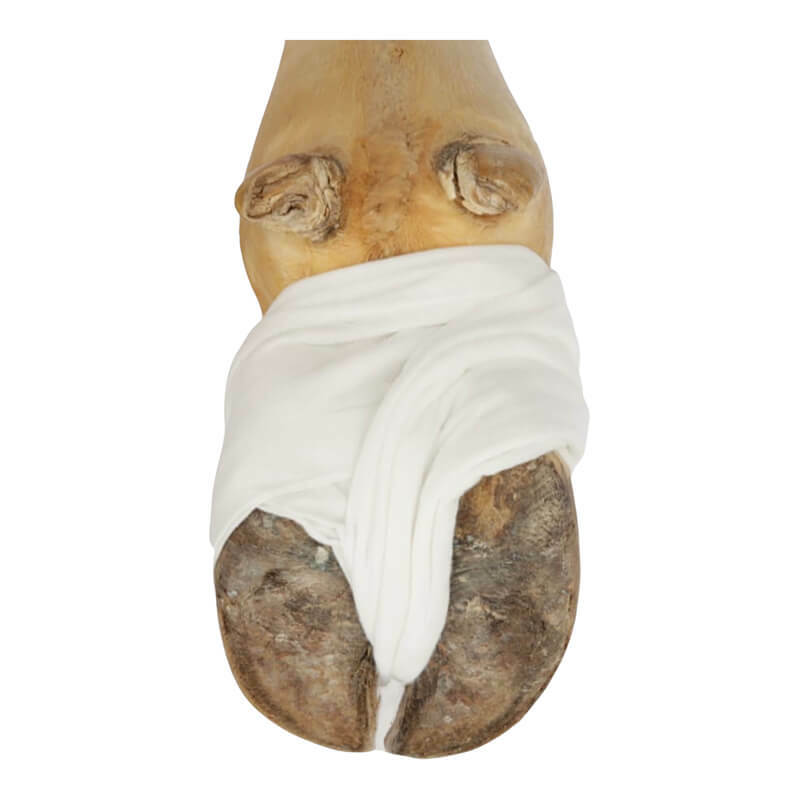 Klövbandage Technobase Absorba 10 cm x 5 meter är ett särskilt absorberande bandage utvecklat för stora djur inom veterinärmedicin och klöv- samt klovård. Materialet är silkesmjukt, poröst och kan användas på båda sidor, vilket gör det lämpligt som både sårförband och för att torka sår. Bandaget är enkelt att klippa till önskad längd och levereras i en praktisk transparent förpackning. Den höga absorptionsförmågan bidrar till att hålla såret torrt, vilket minskar risken för bakterietillväxt och främjar god sårläkning. Klövbandaget uppfyller renhetskraven enligt Ph.Eur. och är ett alternativ till traditionell gasväv vid vård av klövar och hovar på större djur.