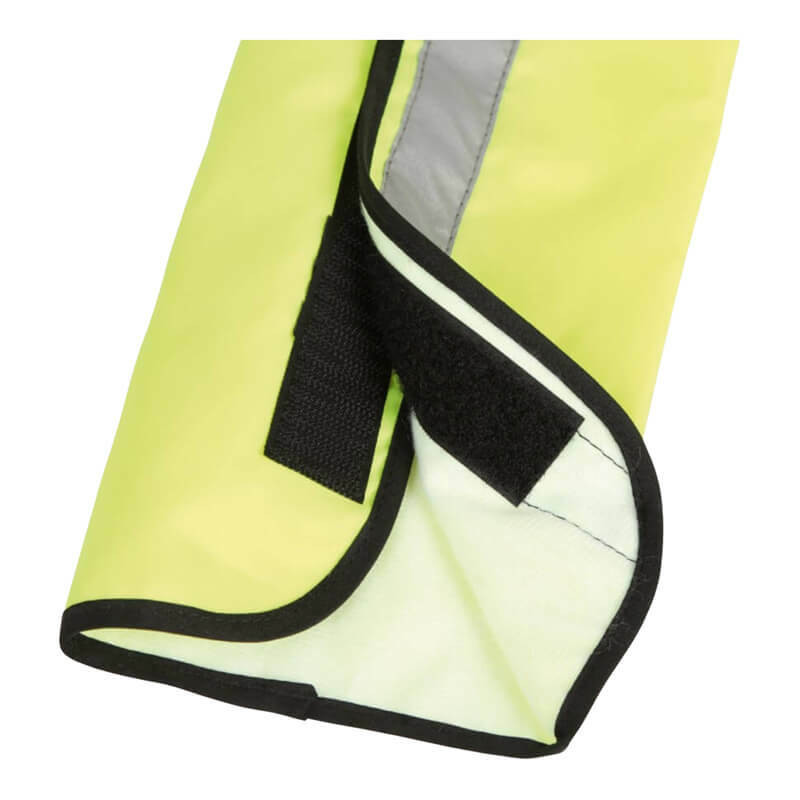 Detta är ett praktiskt och synligt svansskydd som ökar säkerheten vid ridning och körning i mörker och skymning. Den klargula färgen i kombination med reflekterande band gör att ekipaget syns tydligt i trafiken och ute på vägarna.